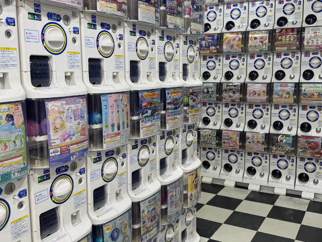 日本ではガチャポン専門店も増えており、数百台以上のマシンが並ぶ店舗もあります。